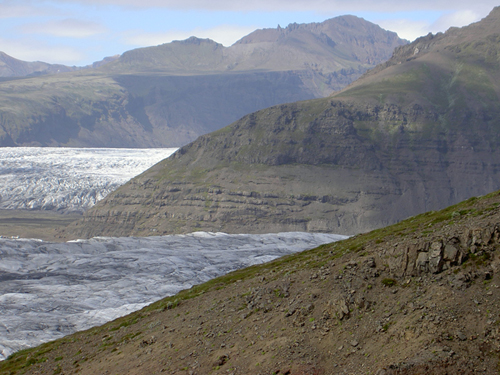 Hafrafell mountain stands between the glaciers Skaftafellsjökull and Svínafellsjökull Hafrafell ligger mellem gletcherne Skaftafellsjökull og Svínafellsjökull |