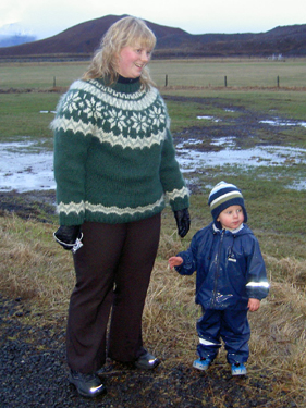 Handprjónaðar lopapeysur sem þessa má kaupa í afgreiðslu sundlaugarinnar